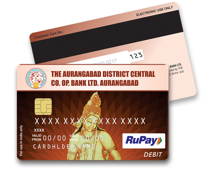 आमच्या बँकेने ऑफर केलेल्या एटीएम (ATM) सेवांमध्ये आम्ही तुमचे स्वागत करतो. सर्वात आधुनिक रोख आता तुमच्याकडे आहे. औरंगाबाद जिल्हा मध्यवर्ती सहकारी बँकेने ‘रुपे डेबिट कार्ड’ सुरू केले आहे. तुम्ही आता कुठेही, केव्हाही २४ तास बँकिंग सेवा तसेच त्रासमुक्त खरेदी करू शकता. कार्डच्या वापरासाठी मार्गदर्शक तत्त्वे वापरकर्ता मार्गदर्शक आणि नियम व अटी दस्तऐवजात नमूद केली आहेत. आमच्या एटीएमवर किंवा इतर कोणत्याही बँकेच्या एटीएममध्ये कार्डचा प्रथम वापर हे वापरकर्ता मार्गदर्शक आणि अटी आणि शर्ती दस्तऐवजात नमूद केलेल्या अटी आणि शर्तींच्या स्वीकृतीइतके आहे.